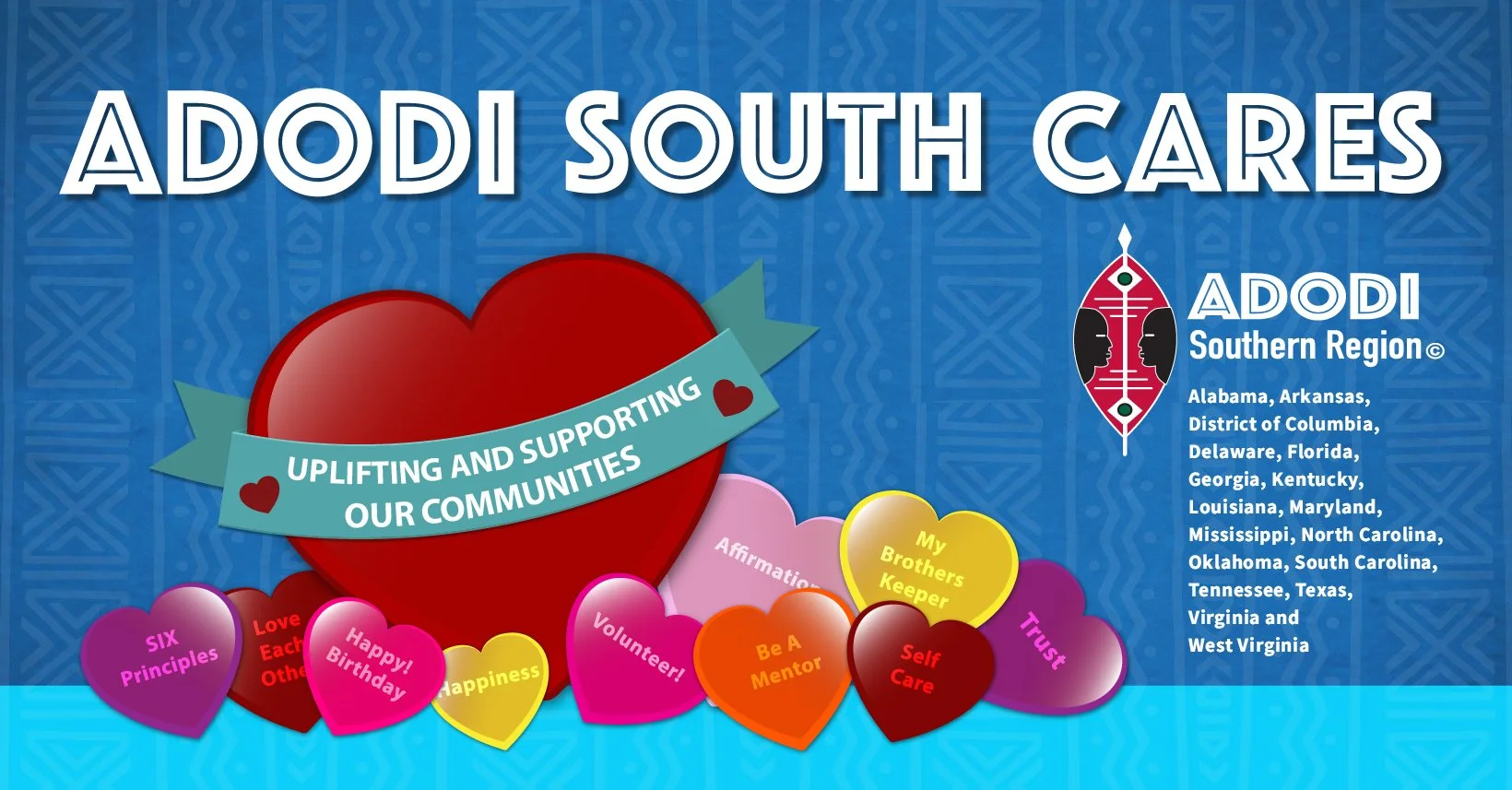ADODI SOUTH CARES is dedicated to Uplift and Support the Adodi Southern Region members and the communities we serve in times of Joy, Sorrow, and Celebration.